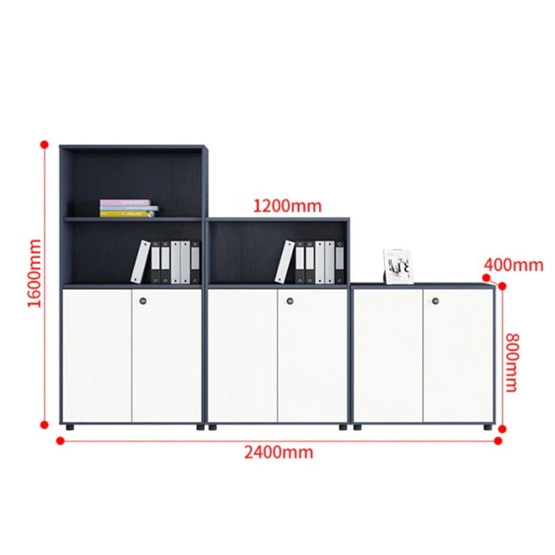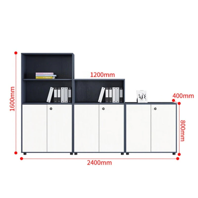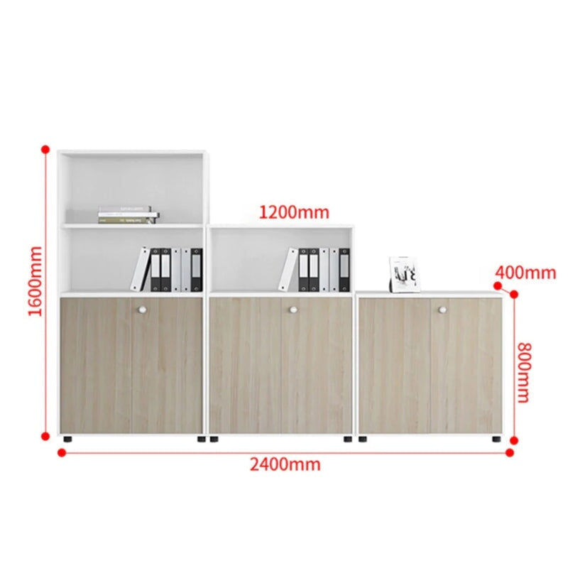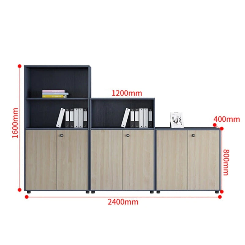 シンプル木製収納キャビネット|エコ合板製オフィス書庫(3点セット対応)