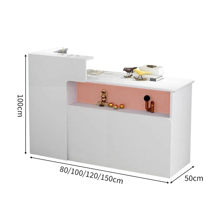 この度、ある店舗様から「店内の空間を有効活用しつつ、訪れるお客様に清潔感と温もりを感じられる受付カウンターを導入したい」という明確的な要望に応えて、ホワイトとナチュラルのバイカラーデザインが特徴の受付カウンターをご提案しました。お客様は特に、省スペースで配置できるデザインを求めており、限られた店舗の空間を最大限に活用したいと考えていました。