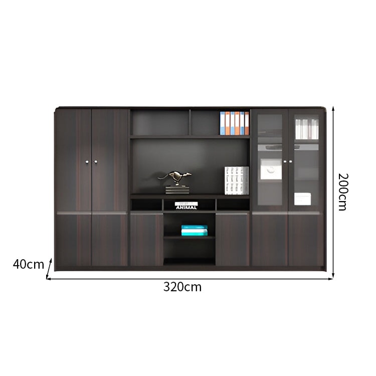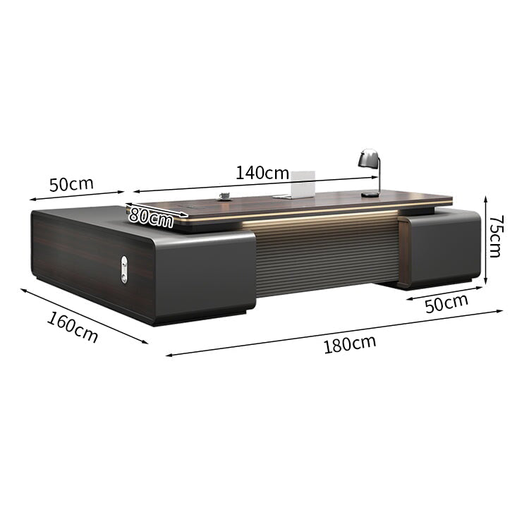 上品なエグゼクティブデスク|ダブルサイドキャビネット|三桁ダイヤル錠付き|PC冷却用通気孔